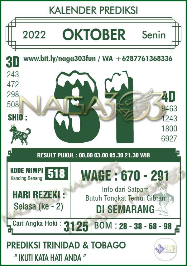 Agen Judi Online Terbesar & Terpercaya, Kami biasa memberikan info yaitu Prediksi TRINIDAD & TOBAGO POOLS, dimana prediksi ini telah kami racik terlebih