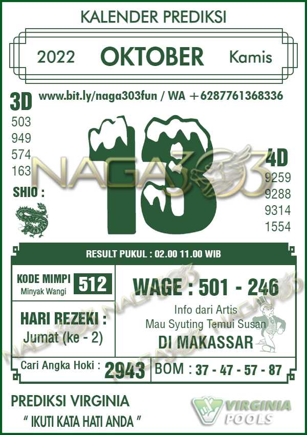 Agen Judi Online Terbesar & Terpercaya, Kami biasa memberikan info yaitu Prediksi VIRGINIA POOLS, dimana prediksi ini telah kami racik terlebih