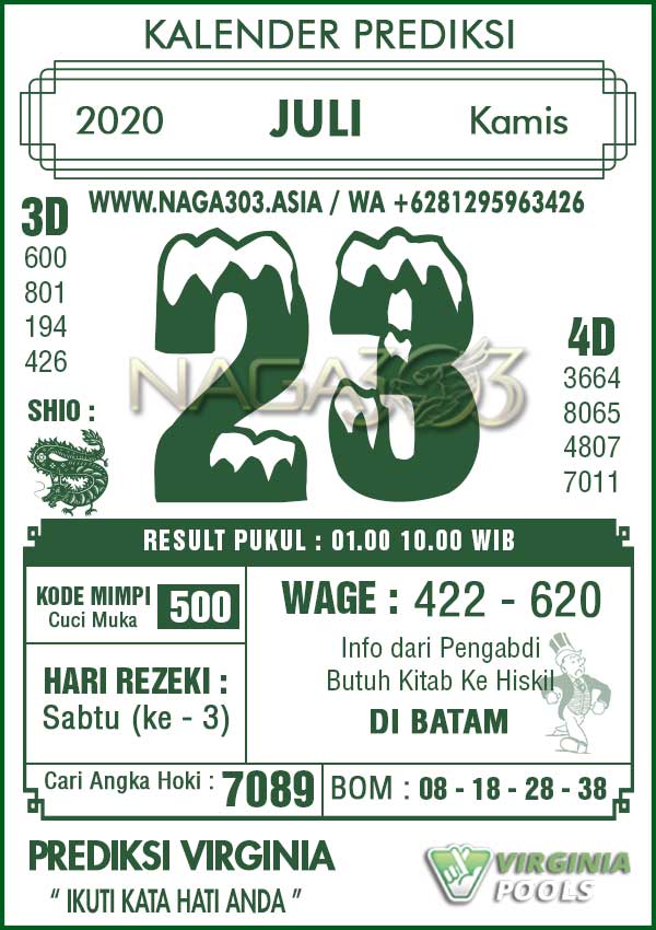 Prediksi Virginia Pools Kamis 23 Juli 2020 | Web Toto Naga303