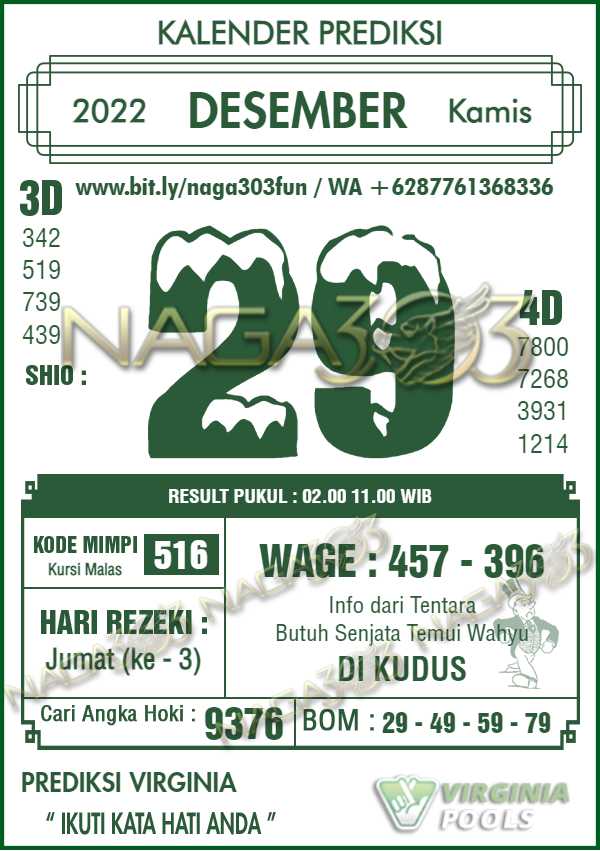 Prediksi Virginia Pools Kamis 29 Desember 2022