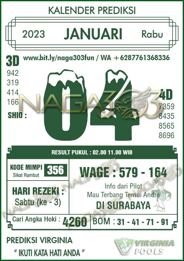 Prediksi Virginia Pools Rabu 04 Januari 2023 | Web Toto Naga303