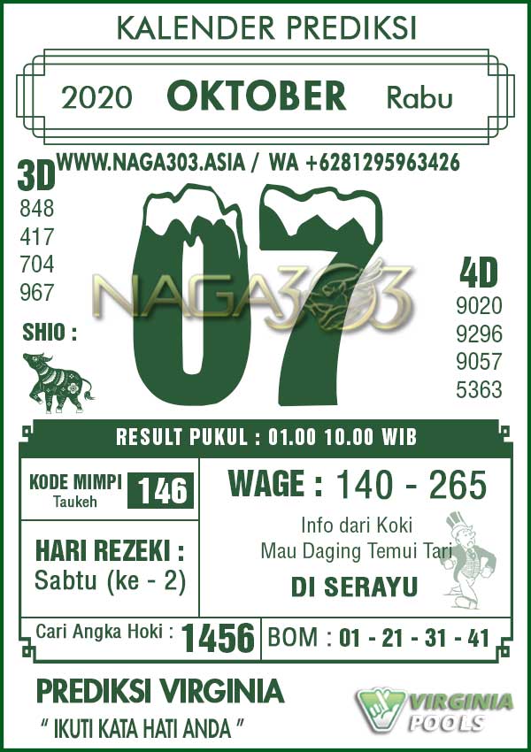 Prediksi Virginia Pools Rabu 07 Oktober 2020 | Web Toto Naga303