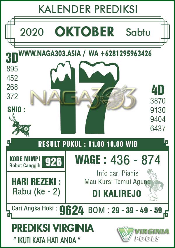 untuk informasi mengenai Prediksi VIRGINIA POOLS, ini lah yang tadi kami bahas semoga bermanfaat prediksinya dan semoga anda beruntung. Salam Hokky…
