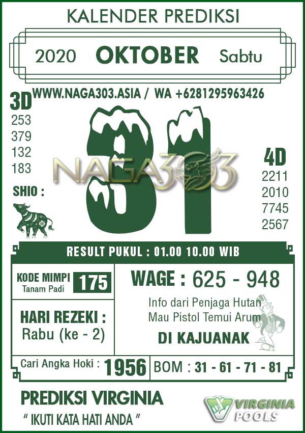 untuk informasi mengenai Prediksi VIRGINIA POOLS, ini lah yang tadi kami bahas semoga bermanfaat prediksinya dan semoga anda beruntung. Salam Hokky…