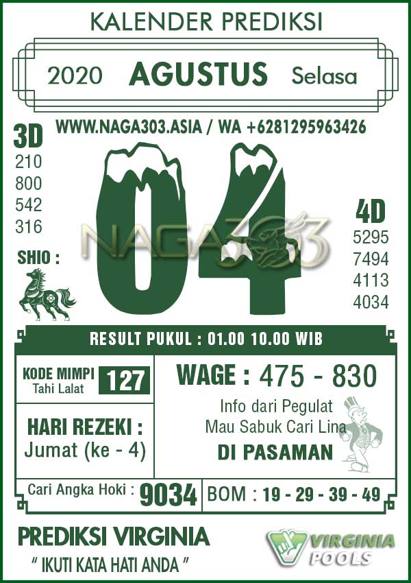 Prediksi Virginia Pools Selasa 04 Agustus 2020 | Web Toto Naga303