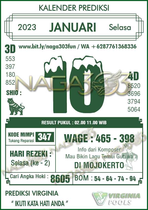Prediksi Virginia Pools Selasa 10 Januari 2023 | Web Toto Naga303