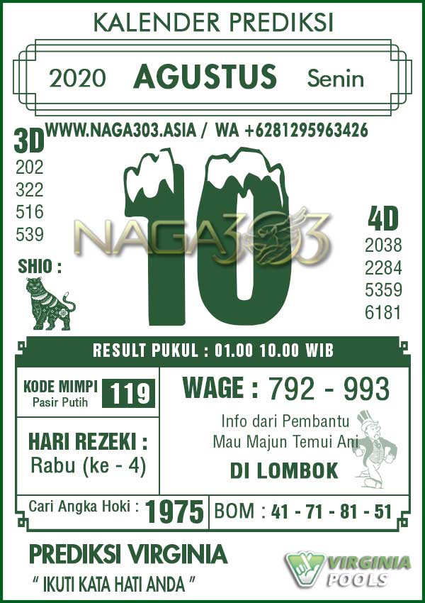 Prediksi Virginia Pools Senin 10 Agustus 2020 | Web Toto Naga303