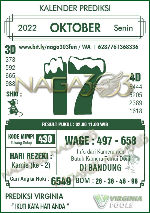 Prediksi Virginia Pools Senin 17 Oktober 2022 | Web Toto Naga303