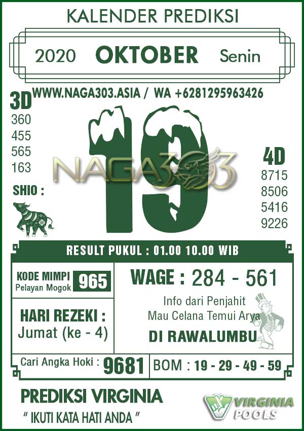 Prediksi Virginia Pools Senin 19 Oktober 2020 | Web Toto Naga303