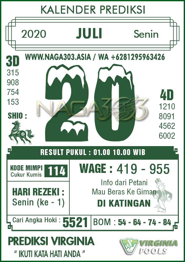 Agen Judi Online Terbesar & Terpercaya, Kami biasa memberikan info yaitu Prediksi VIRGINIA POOLS, dimana prediksi ini telah kami racik terlebih